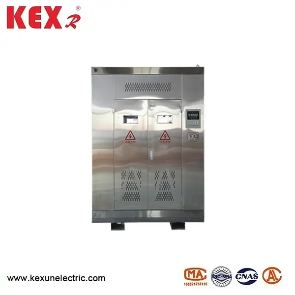 केएसजी ड्राई-टाइप माइनिंग ट्रांसफार्मर के लिए तापमान नियंत्रण प्रणाली में एक तापमान नियंत्रक और कम-वोल्टेज वाइंडिंग के शीर्ष पर स्थापित एक तापमान मापने वाला तत्व होता है, जो उत्पाद का सबसे गर्म बिंदु है। 1T ट्रांसफार्मर के तापमान नियंत्रण को महसूस करता है और ट्रांसफार्मर के संचालन के दौरान वाइंडिंग ए, बी और सी के गर्म स्थान के तापमान को प्रदर्शित करता है। यदि ओवरलोड संचालन या दोष के कारण ट्रांसफार्मर वाइंडिंग का तापमान बहुत अधिक है, तो तापमान नियंत्रक एक अलार्म और यात्रा जारी करेगा, और तापमान नियंत्रण प्रणाली में अलार्म और यात्रा के लिए निष्क्रिय संपर्क होंगे। जबरन एयर कूलिंग का उपयोग करते समय, तापमान नियंत्रक घुमावदार तापमान के आधार पर कूलिंग वातावरण प्रणाली प्रमाणन प्रशंसक के इनपुट या स्विचिंग को निर्धारित करता है। एक RS485 संचार इंटरफ़ेस भी दूरस्थ प्रबंधन के लिए वैकल्पिक रूप से स्थापित किया जा सकता है। उत्पाद आवरण में P21 या उच्चतर का संरक्षण स्तर है